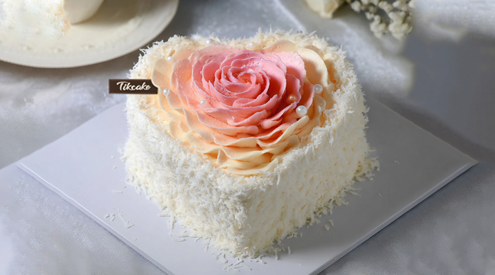 原创渐变粉色心形鲜奶蛋糕