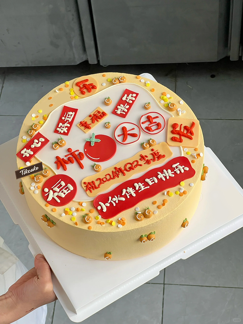 内层蛋糕胚 奶油叠加(含水果果肉),表层手绘图案装饰(文案可定制,请下单时留言)注:此款含有适量可食用色素,介意者慎拍