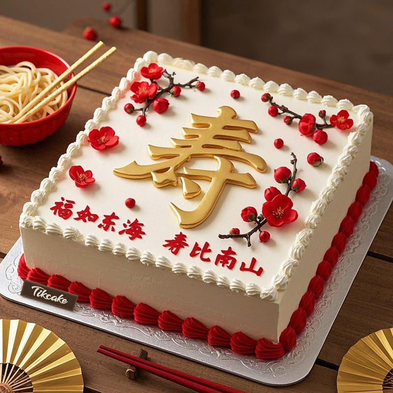 原创祝寿主题方形翻糖鲜奶蛋糕