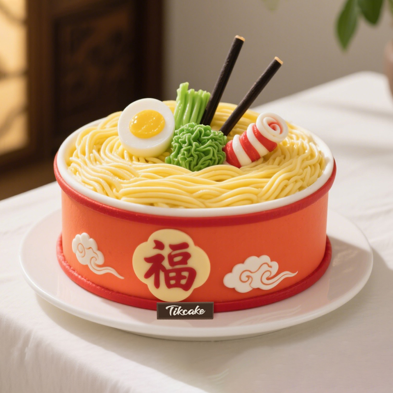 原创“长寿面”祝寿主题翻糖鲜奶蛋糕