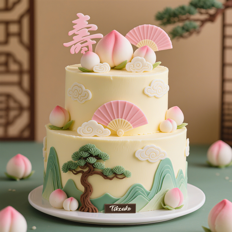 原创双层祝寿主题翻糖鲜奶蛋糕