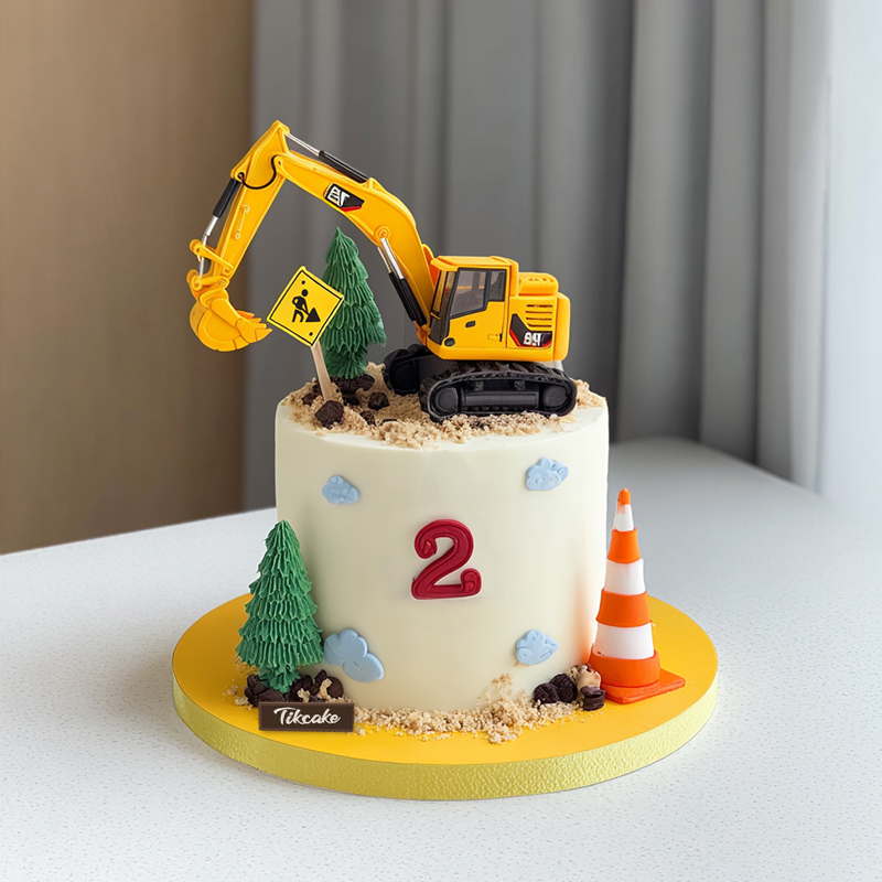 原创挖挖机主题儿童鲜奶蛋糕