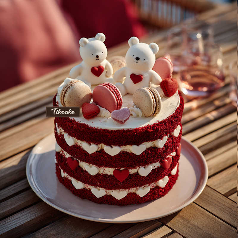 原创爱心主题红丝绒翻糖鲜奶蛋糕