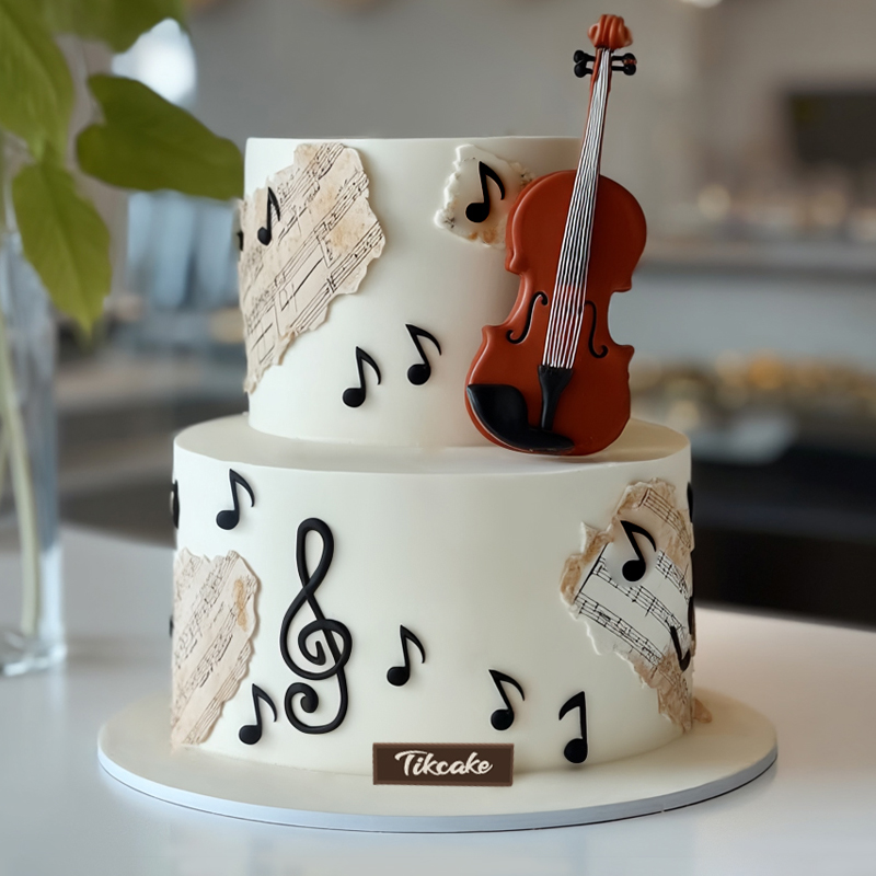 原创小提琴主题双层翻糖鲜奶蛋糕