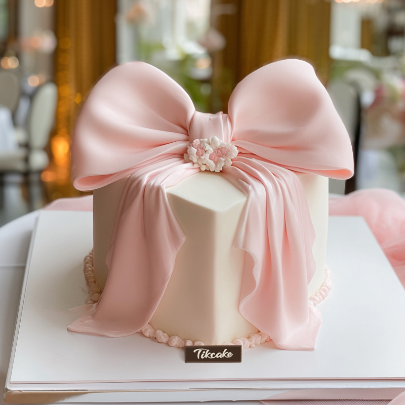 原创心形蝴蝶结主题翻糖鲜奶蛋糕