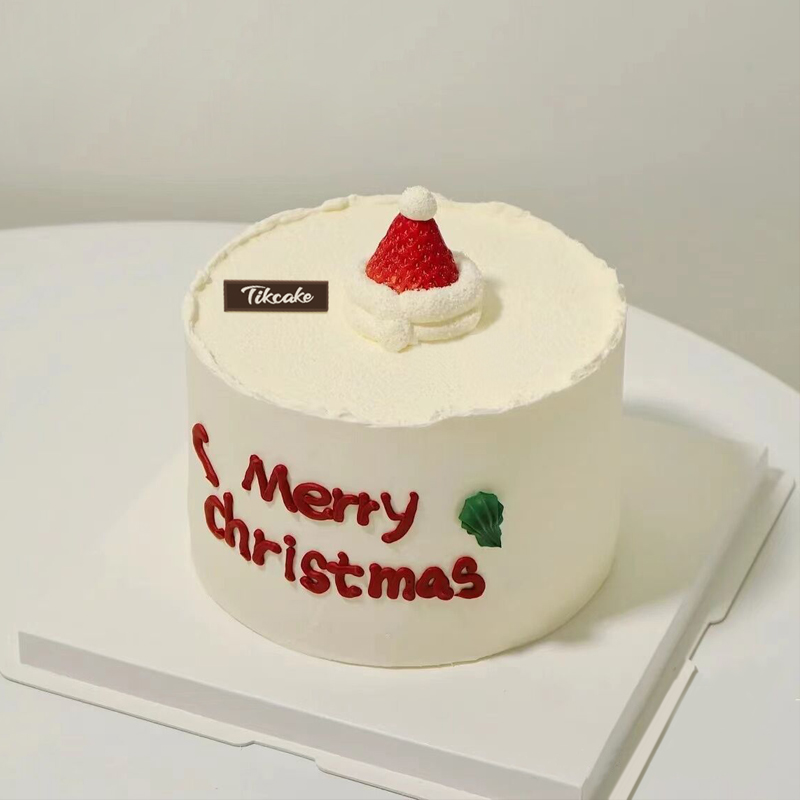 内层蛋糕胚 奶油叠加(含水果果肉),表层圣诞主题装饰