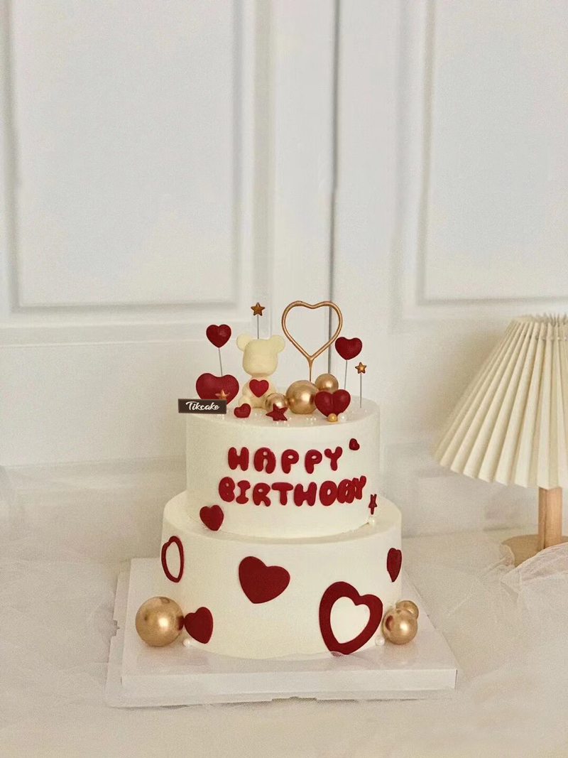 内层蛋糕胚 奶油叠加(含水果果肉),表层爱心,小熊等装饰