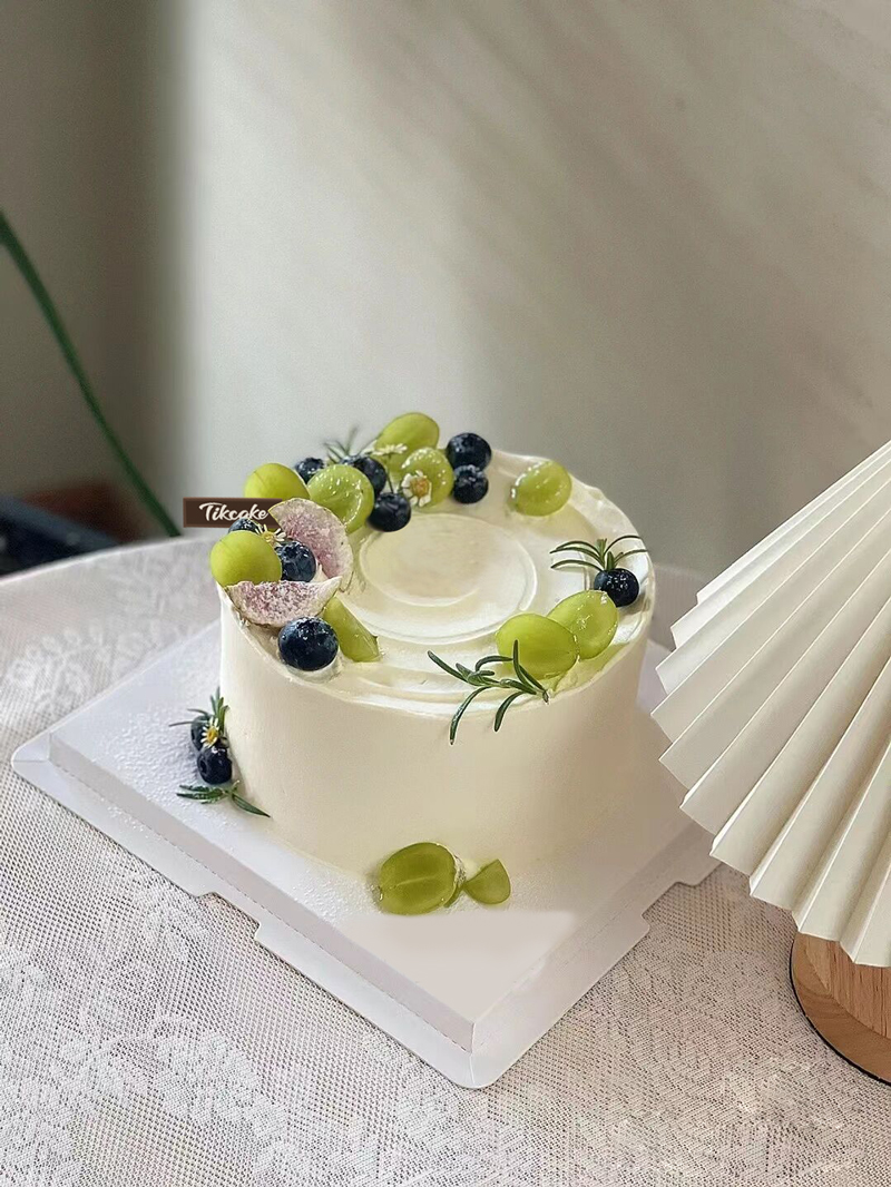 内层蛋糕胚 奶油叠加(含水果果肉),表层青提,蓝莓等装饰