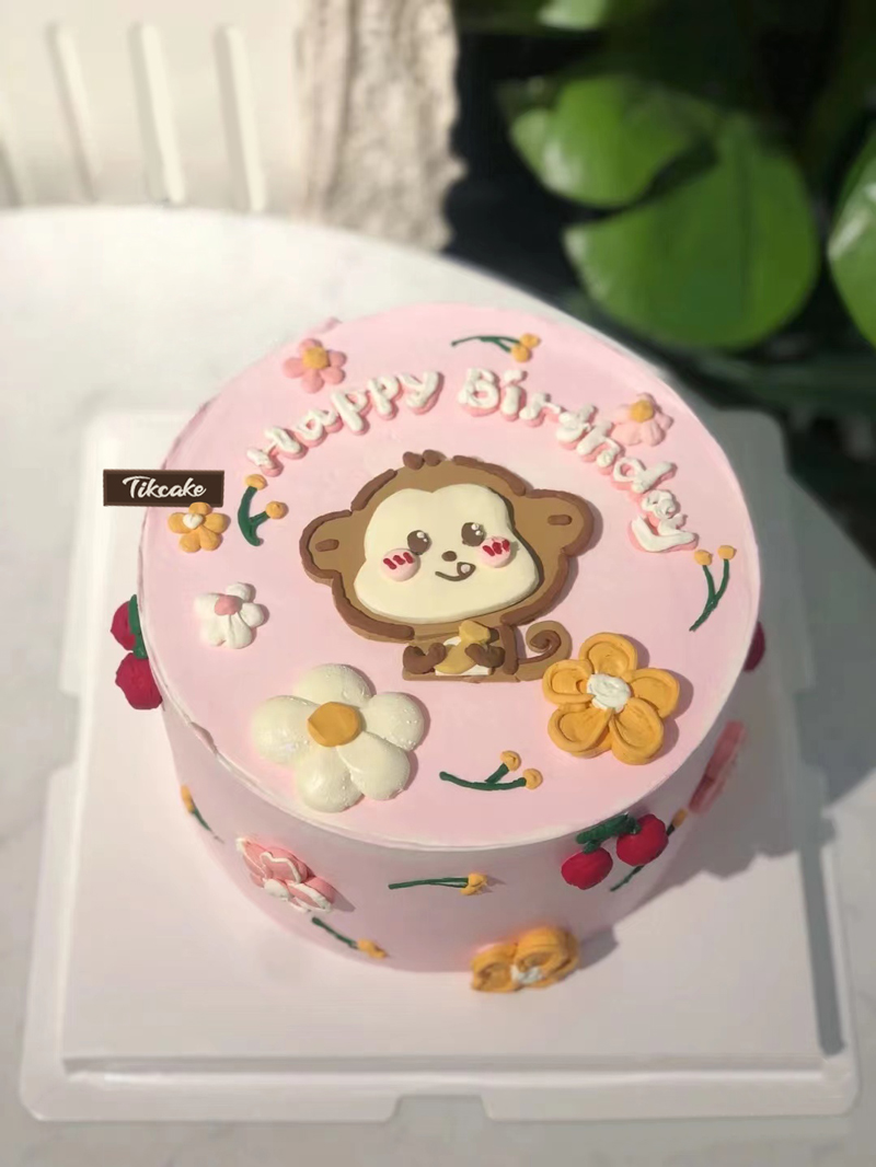 十二生肖粉色款猴主题手绘鲜奶蛋糕