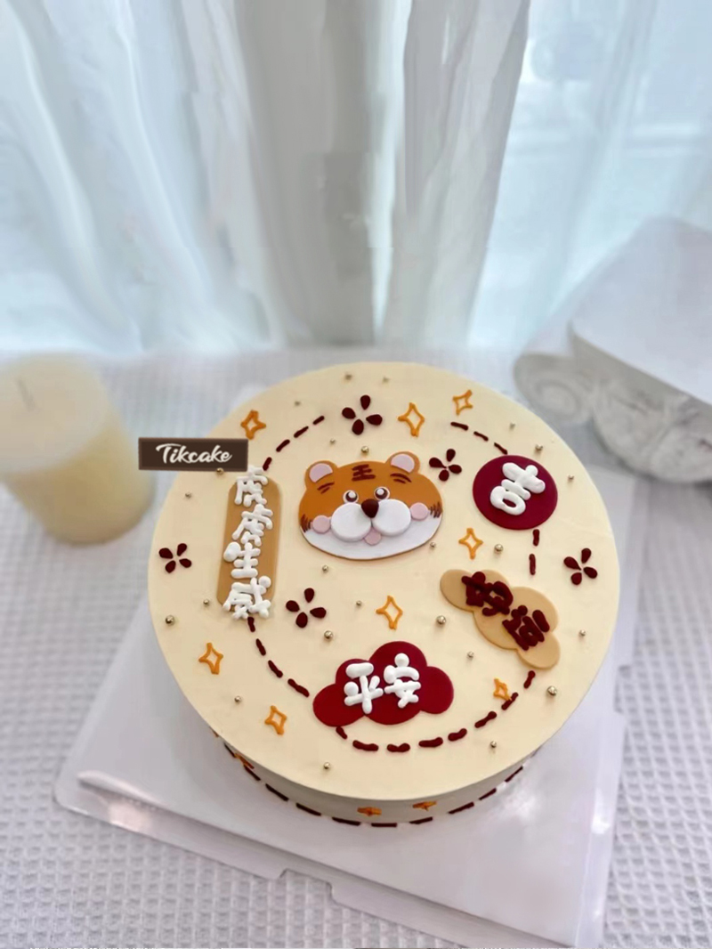 十二生肖虎祝福语主题手绘鲜奶蛋糕