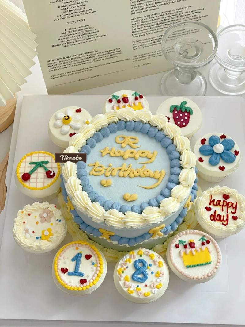 简约男生版手绘鲜奶蛋糕(含10个纸杯蛋糕)