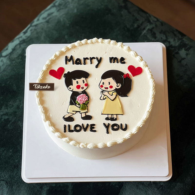 原创婚庆主题翻糖鲜奶蛋糕(含6个纸杯蛋糕)