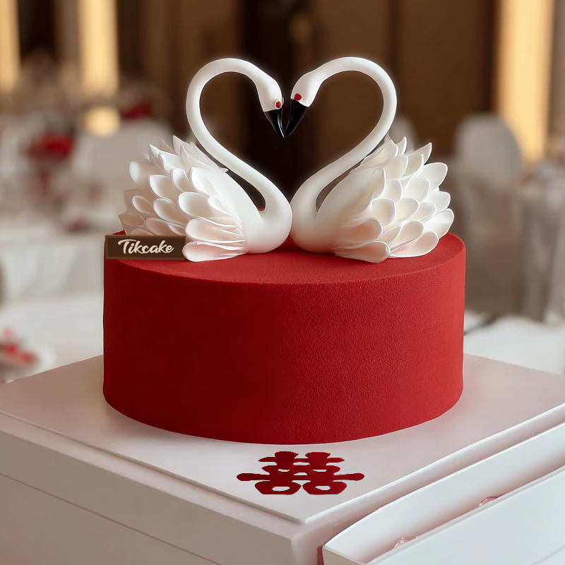 原创双层婚庆主题翻糖鲜奶蛋糕